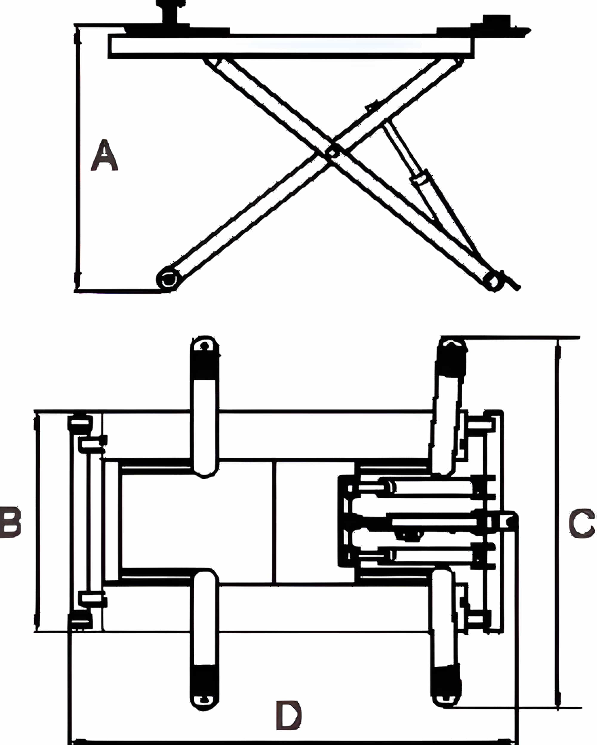 - Dual hydraulic cylinders with synchronized platform travel