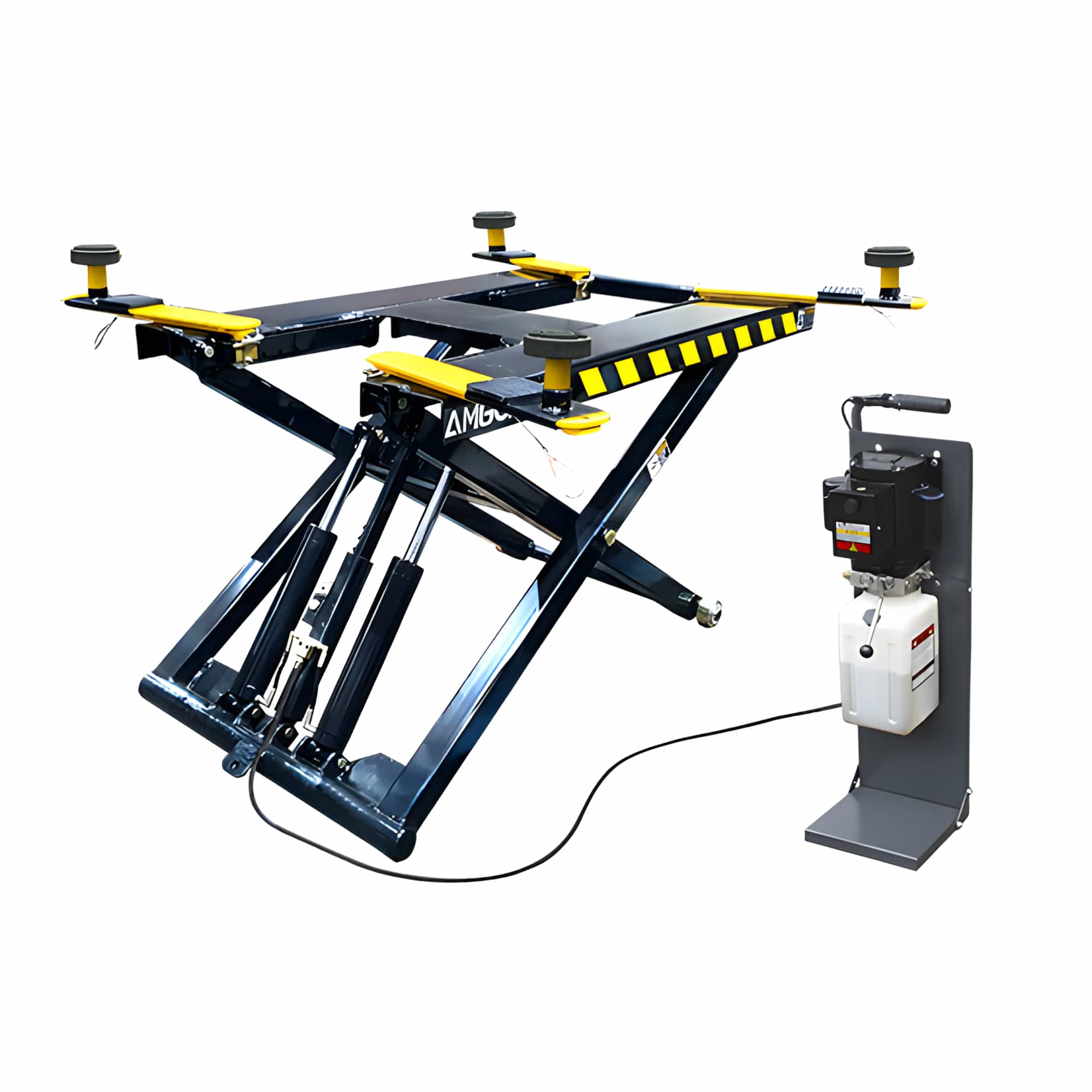 -The AMGO MR06 is a 6,000-lb mid-rise portable scissor lift designed for tire shops, brake bays, and body work in spaces where ceiling clearance rules out a two-post or four-post lift. AMGO Hydraulic Corporation has manufactured professional automotive lifting equipment for three decades, and the MR06 is backed by the AMGO 5-3-2 warranty — five years on structural components, three years on hydraulic parts, and two years on the power unit and electrical components.