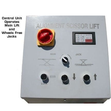 Welded rails on the inside of the runways are standard on all lifts, allowing the bundled Atlas® RJ-6 (6,000 lbs. capacity) air/hydraulic rolling jack system on his Atlas® alignment scissor lift. The Atlas® RJ-6 is designed and engineered to operate on “delivered” air pressure of between 70-105 PSI.