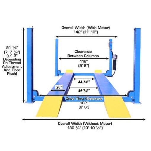 | Overall Width Of Columns (Without Motor) | 130 7/8" (10' 10 7/8") | |