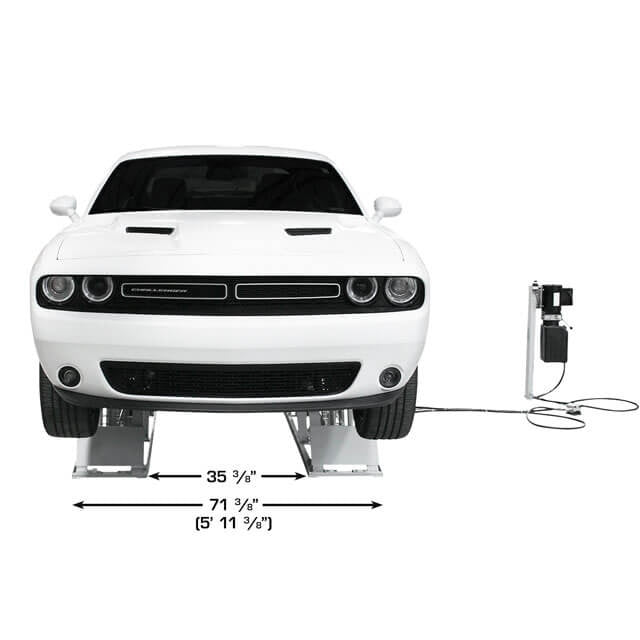 Simply drive the car over the Atlas 6PL and position the rubber blocks (if needed) under the correct lifting points of the vehicle. Press the button the power unit and lift the vehicle to the desired height. Depress the dump valve lever on the power unit and lower the lift to the closest locking position.