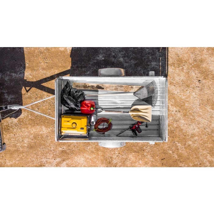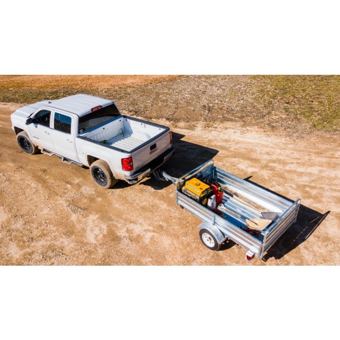 Constructed with fully-welded heavy-duty hot-dipped galvanized tubular steel with a bed size of 4.5 ft. x 7.5 ft. that holds up to 1,639 pounds.