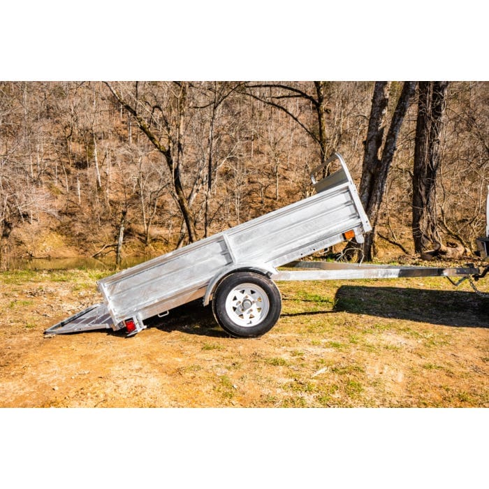 -This single axle multi-utility trailer from DK2 is one of the most versatile trailers on the market. Sitting on a solid square tube cambered axle with 12-inch, 6-ply bias tires and a load capacity of 1,639 pounds. When the front and back load-bearing gates are down, the trailer bed extends to nearly 12 feet in length, and the tilt/dump capability that makes it easy to load or unload heavy items. Fabricated from 100% steel, all of the components are reinforced, adjustable, removable and/or interchangeable.