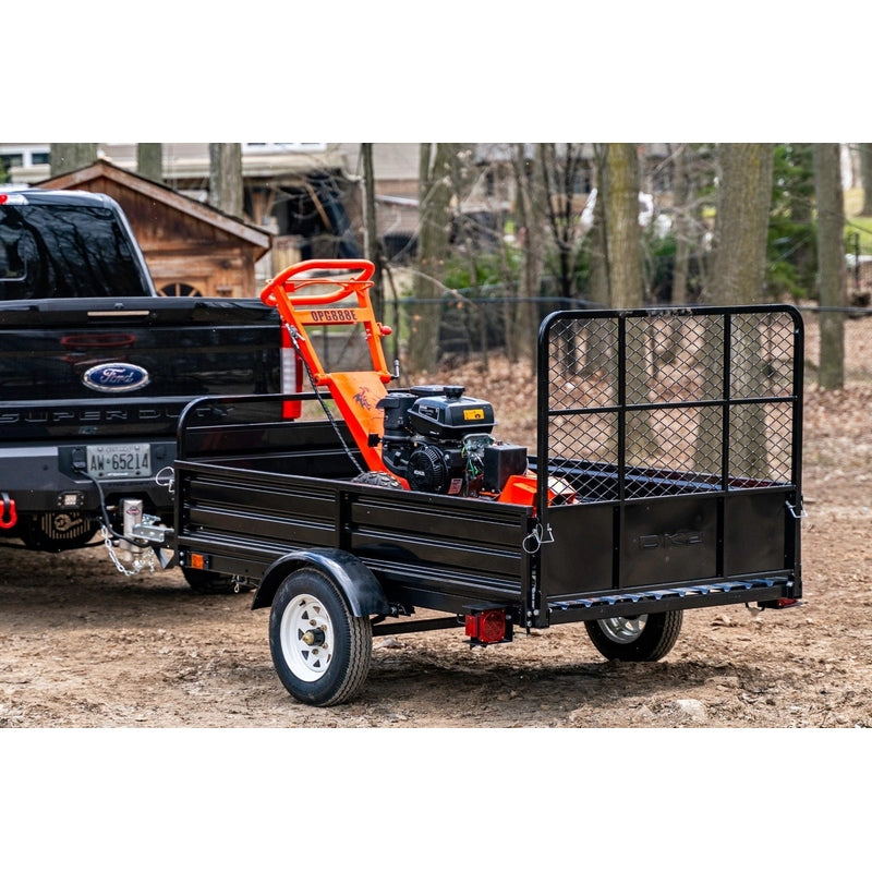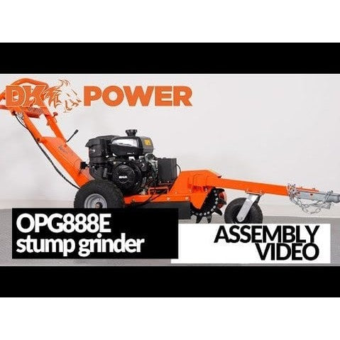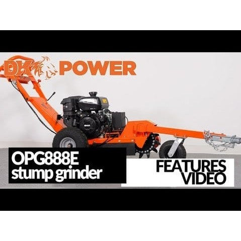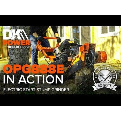 -The DK2 Power 14 in. Commercial Stump Grinder with electric start offers superior torque power delivered to 12 high speed carbide 3600 RPM cutters. This DIRECT BELT DRIVE grinder eliminates clutch slippage and demands 100% cutting performance. The deck belt tension system is easily accessible, saving you time. The comfort bow handle adjusts for storage and can be adjusted to grind stumps up to 14 in. above and 10 in below ground (including root systems). Features operator controlled POSI-LOK Wheel Brake for pivot grinding and a CE safety approved hands-off shutdown system. The removeable FLIPBAR is mounted with a trolley wheel caster and tow hitch for towing. DK2 Power designs and manufactures top performance commercial equipment for the hard-working professional.