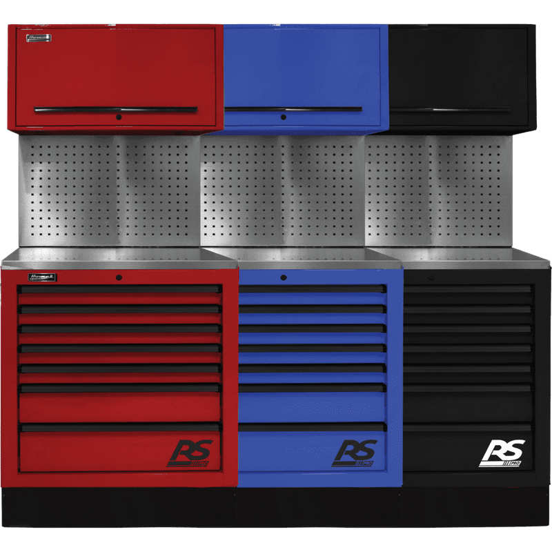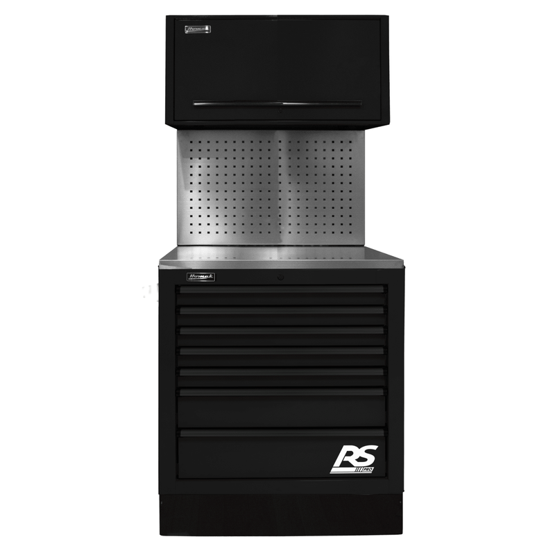 -The Homak 36 CTS Set with a solid/toolboard back splash is a comprehensive addition to your garage or shop, offering multifunctional utility. This set comprises 7 spacious drawers and an overhead canopy, facilitating flexible organization of your tools and equipment. The drawers, equipped with PVC foam liners, safeguard the surfaces from scratches and stains, ensuring the protection of your tools. Additionally, the stainless steel top provides a durable work surface, enabling you to perform various tasks with ease and durability within your workspace.