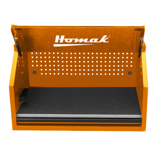 -The Homak RS Pro 41" 1 Drawer hutch is designed to enhance the organization of your industrial workspace. Specifically crafted for use atop a roller cabinet, this hutch provides supplementary storage capacity to your current unit. Constructed from robust steel and coated with a UV-resistant black powder finish, it ensures durability while effectively expanding your storage options within your workspace.