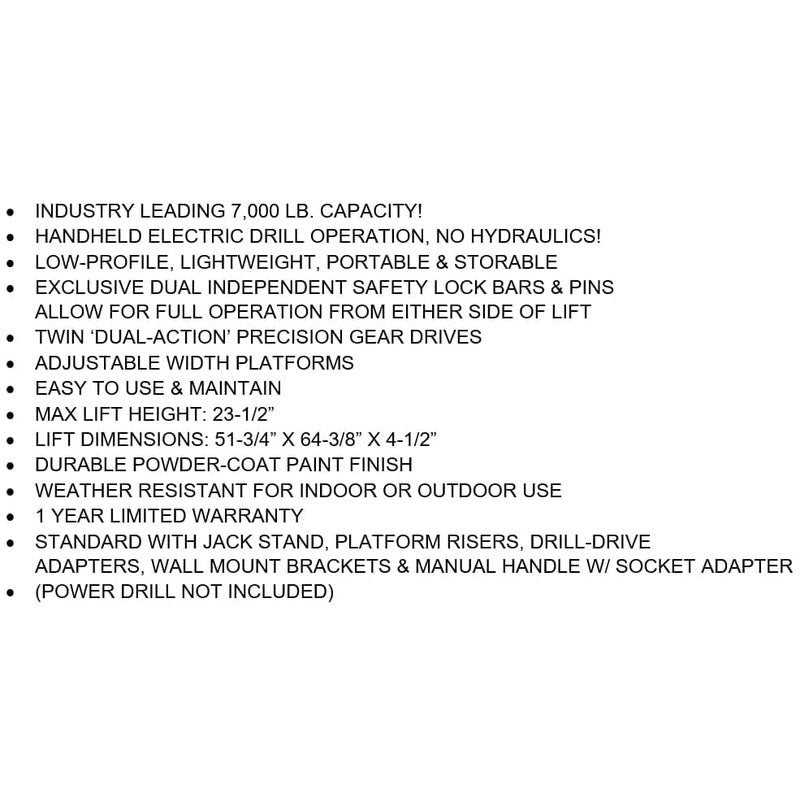| Max Lift Height | 22-1/2"-23-1/2" w/ Risers |