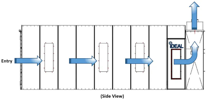 -- True Cross-Draft Performance: Optimized airflow delivers 9,500 CFM @ 0.5" static pressure for steady capture of overspray and fumes.