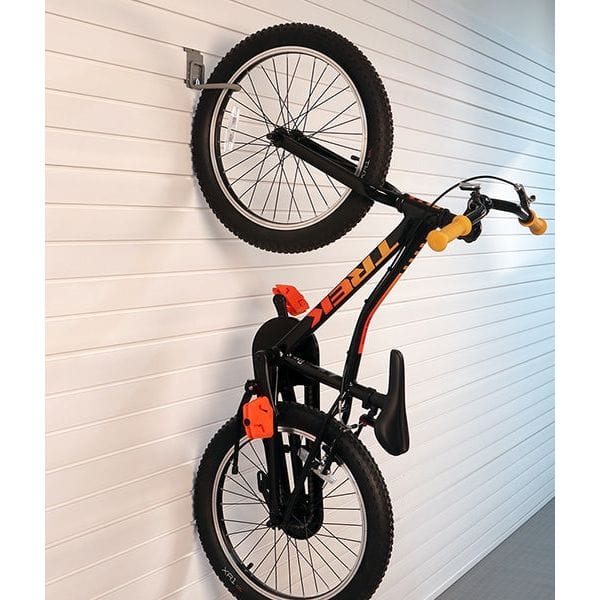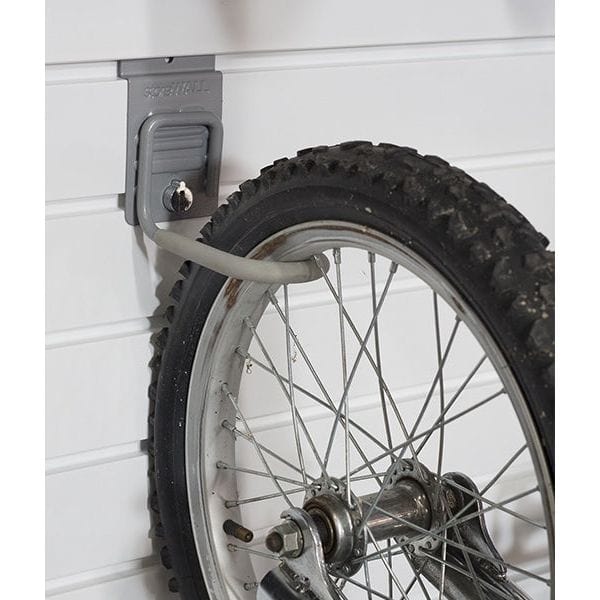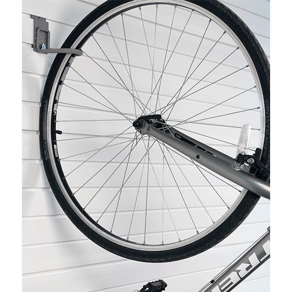 -The J-Hook offers a simple and elegant solution for storing your valuable bicycles while conserving precious slatwall space. This versatile garage bike rack is designed to accommodate any bike or trike with spoked wheels and allows for efficient vertical storage.