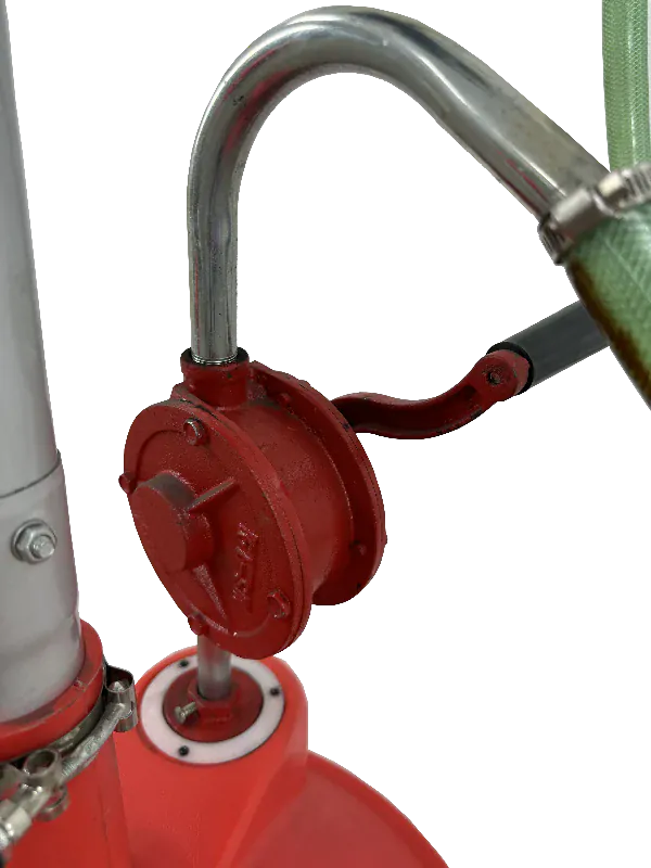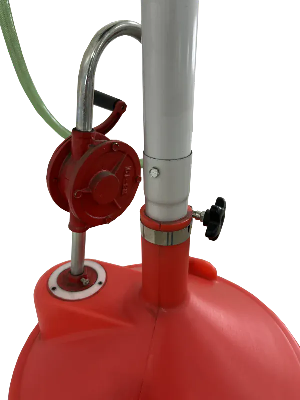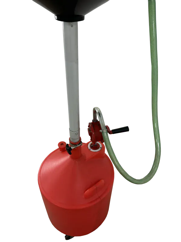 - Evacuate used fluid using the manual hand pump and 4 ft hose with nozzle for controlled discharge.